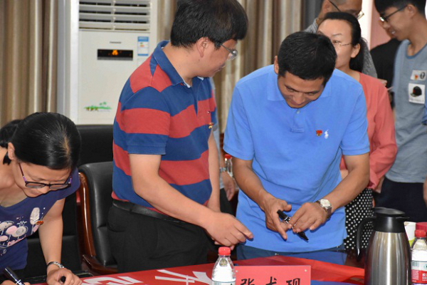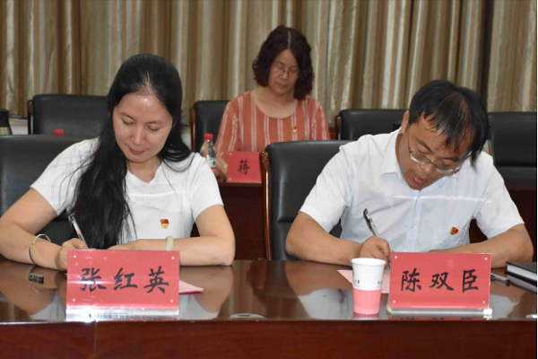 7月6日上午,河南科技大学党委组织部部长李会宗同志主持了结对共创“全国党建工作样板支部”主题会议。会上,我院预防兽医系支部书记张红英与该校园艺系党支部书记陈双臣就各自支部的建设情况进行了充分交流,双方签订了“全国党建工作样板支部”倡议书,共同倡议: