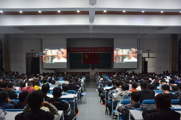10月12日晚,学院于龙子湖校区繁塔楼大教室2举行了2019级新生递交入党申请书仪式,学院团委书记余果、副书记韩笑和学生党支部书记以及2019级新生参加会议。