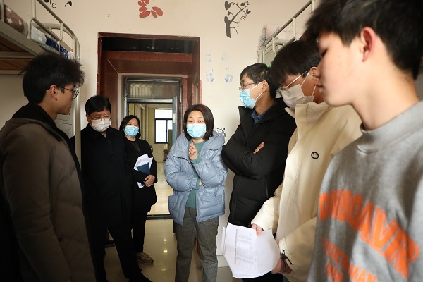 在走访的过程中,我院领导与同学们亲切交谈,面对面了解学生返校思想动态,仔细倾听同学们寒假经历,叮嘱同学们积极调整心态,尽快融入新学期生活。廖仲磊表示,新的学期希望同学们做好自身疫情防控的同时生活上自理、管理上自治、学习上自觉、目标上自我选择、思想上自我加强,情操上自我陶冶,望来日能宏图如鲲鹏展翅,一飞冲天。