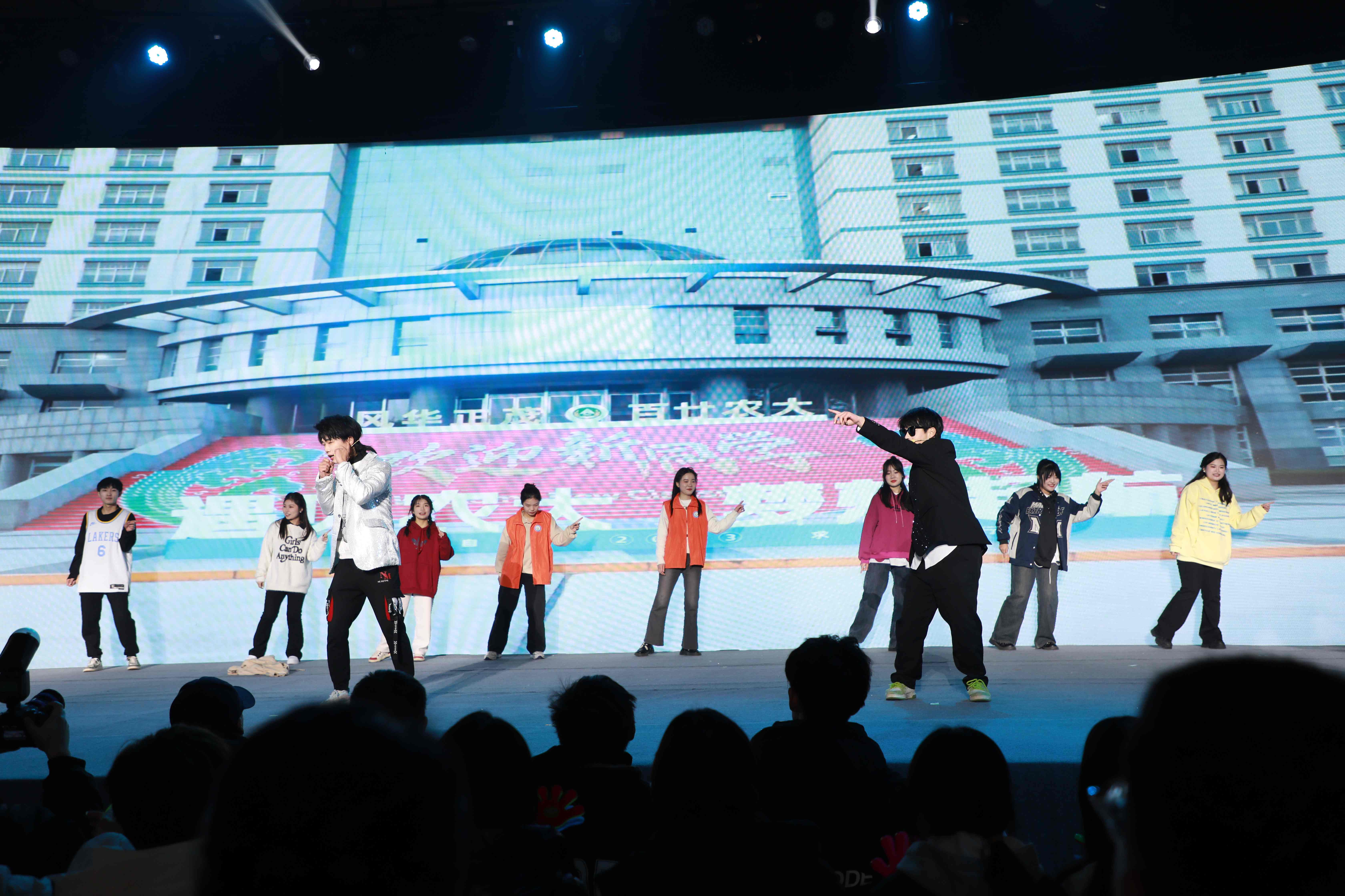 以舞展风采,以舞向未来,青春活力的开场舞《奔跑的青春》拉开了元旦联欢会的序幕。以青春之我,创建青春之国家,幕布剧《觉醒青年》让台下观众燃起一片赤诚的爱国心。歌伴舞《星辰大海》和舞蹈《寄明月》,舞者灵动,韵律随心,感受现代美感的同时,又带有古风的韵味。《年代歌曲联唱》和《抖音歌曲联唱》不同的面孔,不同的声音,不同的歌声,带给观众不一样的风采。朗诵《闪耀吧,青春的动医》带我们回顾了这一年动医人团结奋进、力争上游的精神风貌。相声《考上大学以后》和小品《我的梦想清单》带领观众们回忆开学时光,展望光明未来。说唱《飘向北方》B-box、说唱和歌曲的融合将晚会推向一个新的高潮,展现我院师生的活力激情。助班节目《歌曲舞蹈串烧》祝愿动医学子永远奋激勃发,朝气蓬勃。万家灯火时,四海笙歌起,元旦晚会在教师节目《相亲相爱一家人》中拉下帷幕。