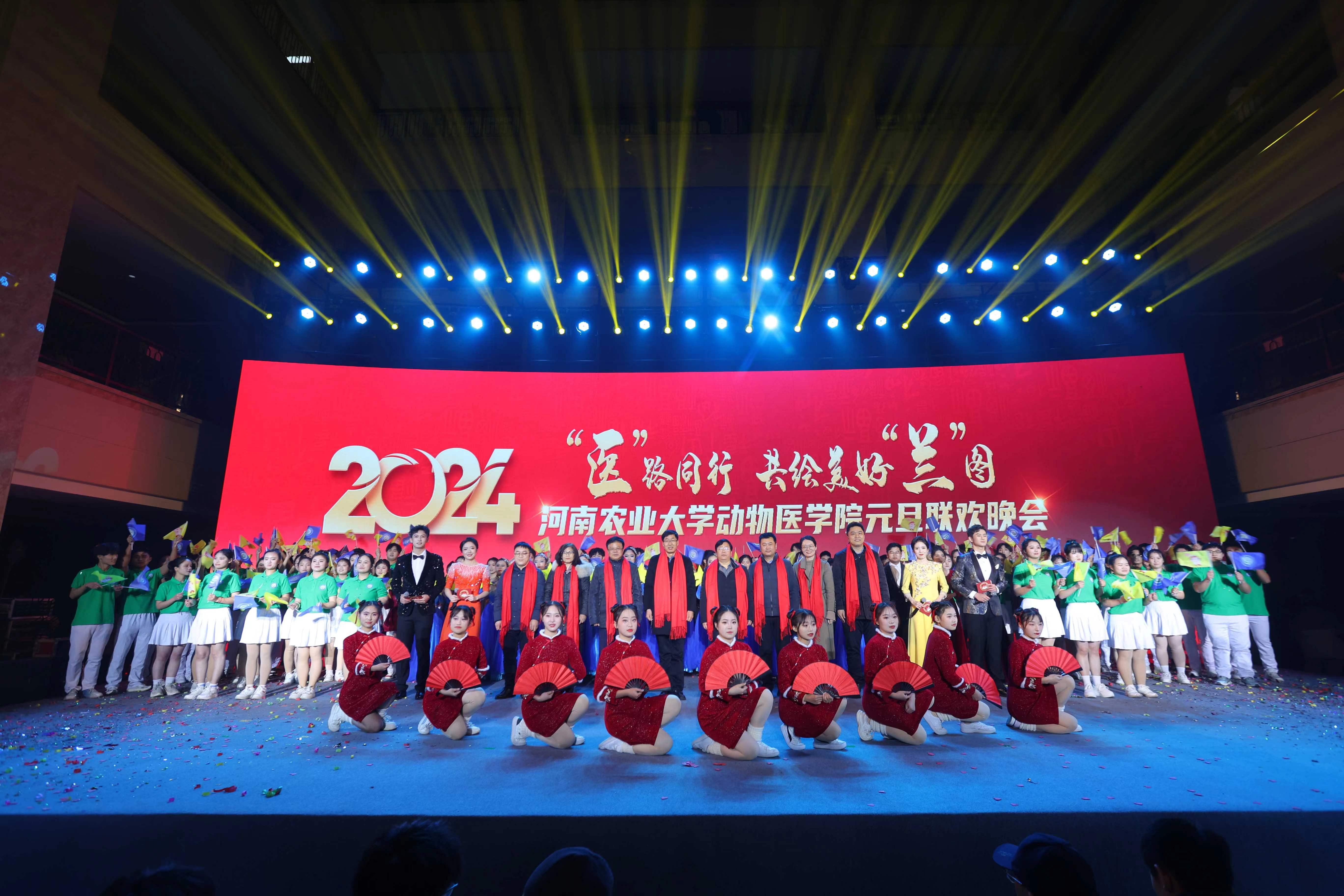 12月29号,我院于龙子湖校区第一实验楼一楼大厅举办“医”路同行 共绘美好“兰”图--2024河南农业大学动物医学院元旦联欢会。副校长郭战伟,校党委学生工作部部长徐峰,校团委书记贾云飞,许昌校区执行校长魏战勇,校宣传部副部长周红飞,校党委学生工作部副部长李沛,校团委副书记张倩,动物科技学院院长李明、副院长付彤、副院长孙宇,动物医学院党委书记廖仲磊、院长张龙现,副院长韩立强,美兰集团研发技术总监张先锋,生物疫苗研发部项目经理周欣等出席本次活动。学院师生近千人欢聚一堂,共迎新年。