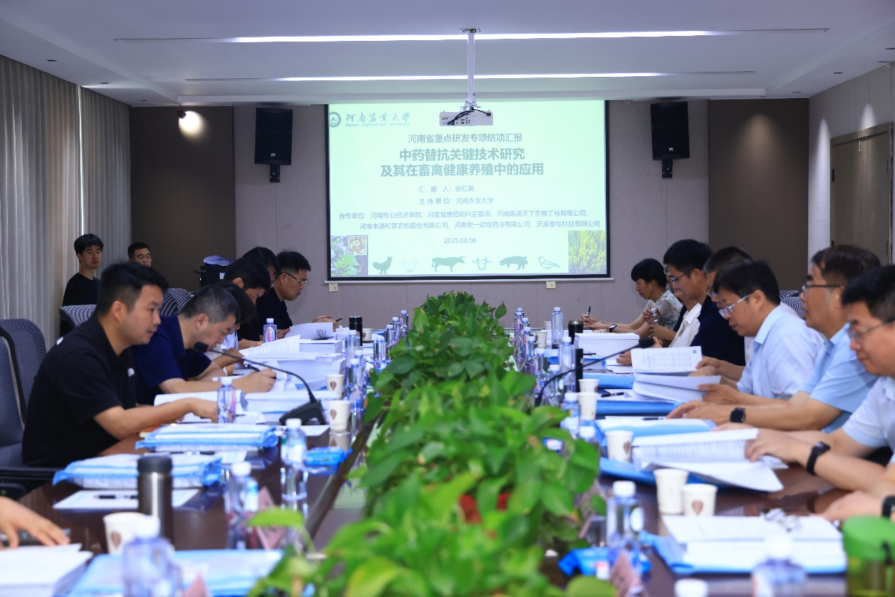 近日,河南省科技厅组织有关专家赴封丘县对我院张红英教授主持的河南省重点研发专项“中药替抗关键技术研究及其在畜禽健康养殖中的应用”进行结项验收。我校科技处处长杨青华、动物医学院院长魏战勇、财务处副处长朱应举、河南牧业经济学院科技处副处长史岳鹏、省科技厅现代农业农村科技处主任陈希源、我校科技处科长许恒出席会议。河南牧业经济学院、河南省兽药饲料监察所、河南惠通天下生物工程有限公司、河南牧一动物药业有限公司等6家项目参加单位课题负责人和技术骨干参加会议。