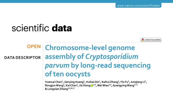 近日,河南省人兽共患病国际联合实验室张龙现教授科研团队在Nature旗下杂志SCI DATA (近5年IF:8.9)上在线发表了以河南农业大学动物医学院为第一单位,陈远才博士为第一作者的研究论文Chromosome-level genome assembly of