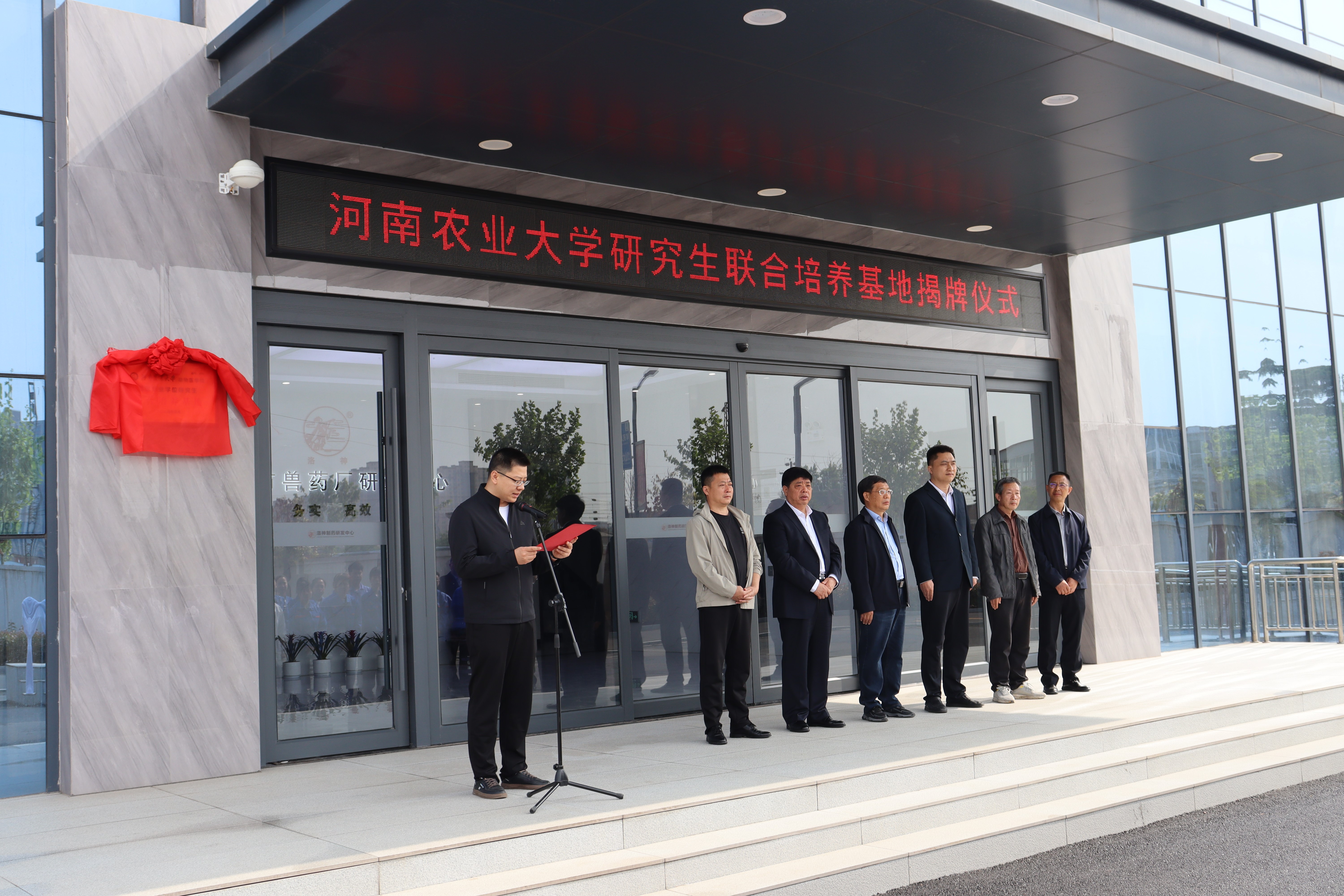韩立强与史书通共同为企业揭牌。揭牌仪式上,韩立强表示,我院和洛阳市兽药厂本着“真诚合作,资源共享,优势互补,互惠互利,共同发展”的原则,双方将在科技创新、产品研发、人才培养等产学研方面开展全面合作。