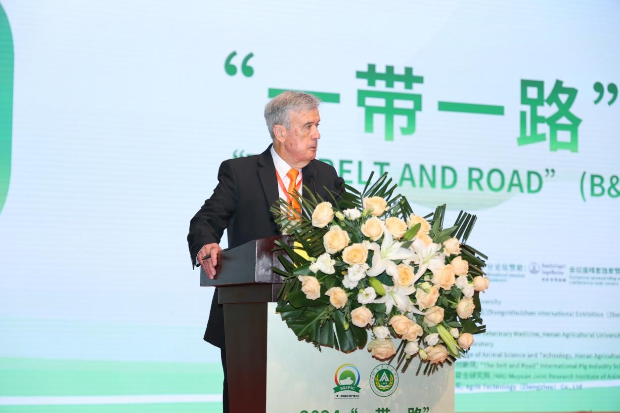 张改平表示,2024年度“一带一路”国际生猪产业大会,是继河南农业大学在2020年、2021年、2022年连续三年承办中国工程院国际工程科技战略高端论坛后,以生猪产业流行病学与健康经济学为主题,为国内外专家搭建的分享前沿科学实践研究的高端平台。大会同时创新性地开设了以养猪领先国家和地区为主线的丹麦、法国、荷兰、北美专场,力求推动国内养殖业走出去、动物疫病防控国际化、生猪养殖智能化、精准化。他希望通过此次大会,可以整合养猪企业和科研院所的优势力量,开展产学研深度合作,解决行业共性问题,实现产业新跨越,共谋养猪业健康高效发展,加快生猪产业创新与国际化进程,为加深与“一带一路”沿线国家或地区的合作和交流作出新的重要贡献。