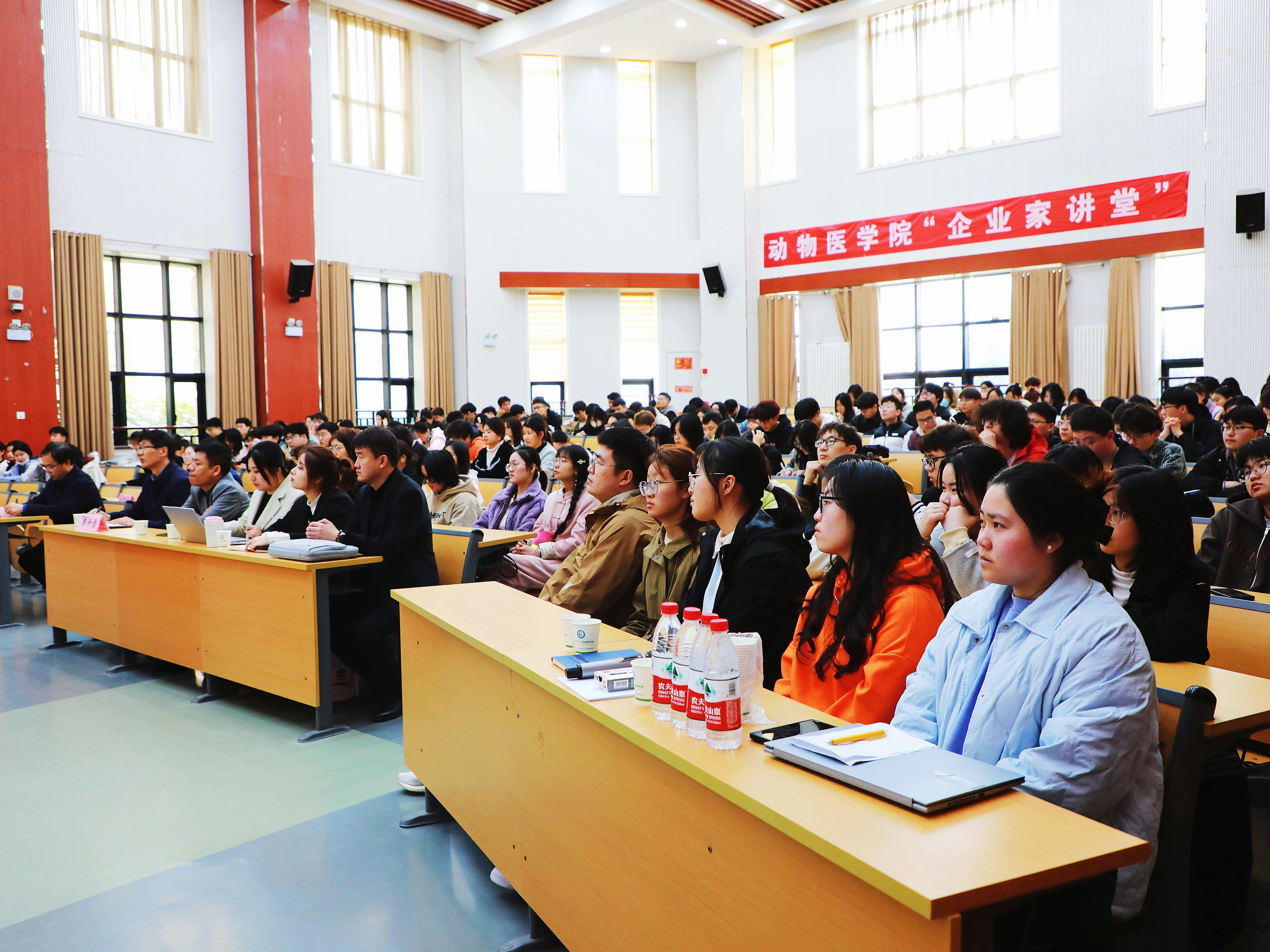 为落实产学协同育人理念,推动人才培养契合行业发展需求,3月17日,我院于龙子湖校区大教室5举办弘医成材系列讲座之“企业家讲堂”活动。本次企业家讲堂特邀北京沃德辰龙生物科技股份有限公司副董事长、北京市华都峪口禽业有限责任公司党委书记周宝贵作为主讲人。河南农业大学招生就业办公室主任张红阳、我院党委书记廖仲磊、党委副书记杜家方出席本次活动,我院与动物科技学院研究生本科生300余人参加此次活动。活动由张红阳主持。