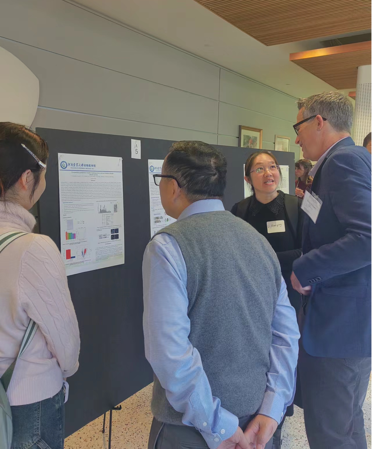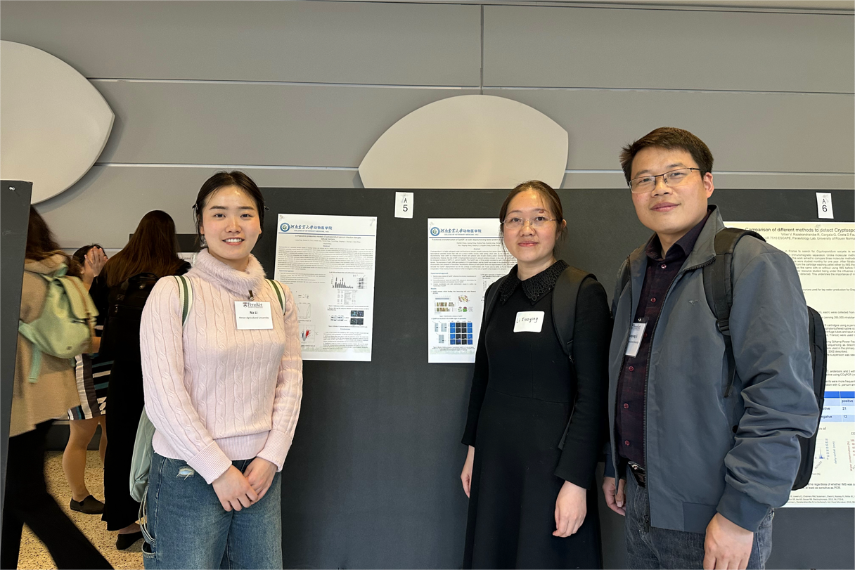 会议在宾夕法尼亚大学学术报告厅举行,共分为口头报告和海报展示形式,与同行专家分享研究成果、经验和见解。我院师生进行了海报展示,介绍了基于比较蛋白组技术检测微小隐孢子虫入侵宿主细胞过程中膜蛋白的变化,以更好的了解微小隐孢子虫与宿主相互作用机制,该研究发现在微小隐孢子虫入侵宿主细胞过程中宿主细胞屏障功能被破坏,细胞骨架蛋白发生改变,为微小隐孢子虫入侵宿主过程中的分子和生物学功能提供了更深入的了解。