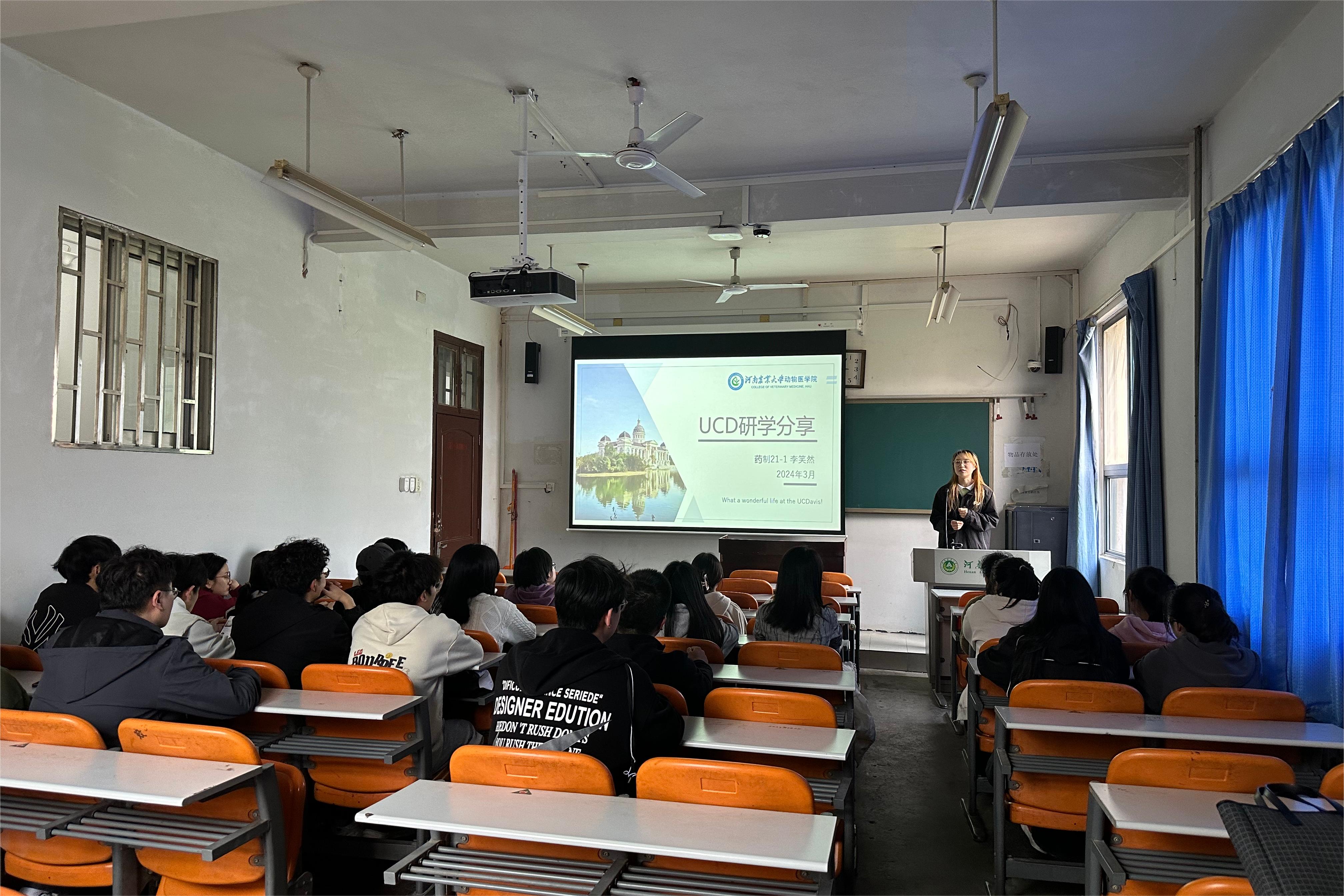 为拓宽学生的国际化视野,增强学生的学术科研水平,大力培养国际化人才,3月11日-22日,我院23级各班级陆续开展加州大学戴维斯分校(UCD)研学经验交流分享主题班会,各班班会邀请了范明夏、朱玉涛、康云哲、李阳、刘一和李笑然六位同学分享寒假研学经历,班会由各班班主任主持。