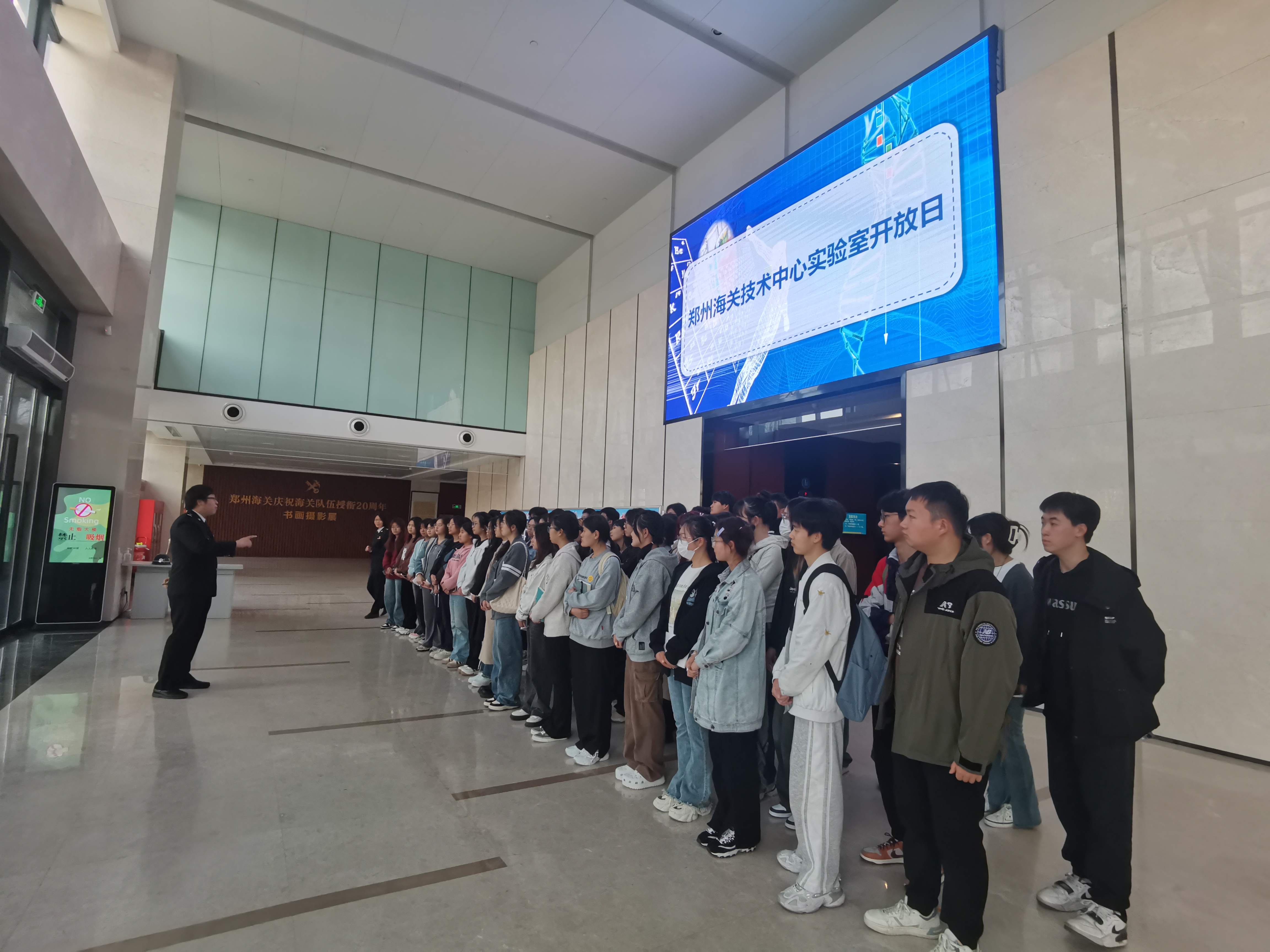 抵达郑州海关技术中心后,同学们首先参观“海关队伍授衔20周年书画展”,对海关制度的建立有了初步的了解。随后在二楼会议室听取了海关知识讲座,讲座由郑州海关技术中心正高级兽医师苗丽担任主讲,苗老师从境外出口隔离场认可、检疫审批、国外预检、现场检疫、隔离检疫、实验室检验、检疫处理、鉴证放行、动植物检疫特性等九个方面,将郑州海关技术中心的主要工作内容和场景进行了详细展示,进一步加深了同学们对海关的认识。