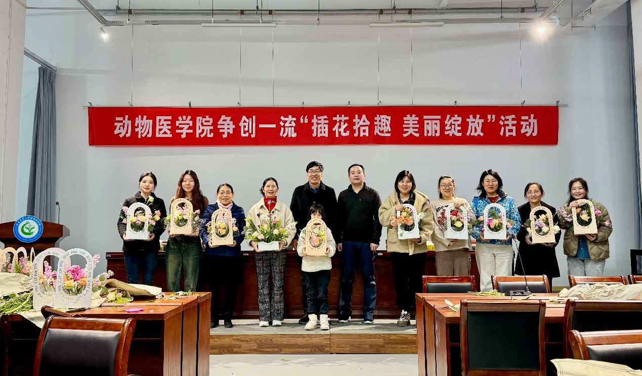 3月8日下午,在第114个“三八”国际劳动妇女节来临之际,我院在第一实验楼六楼组织举办动物医学院争创双一流“插花拾趣·美丽绽放”主题插花体验活动。