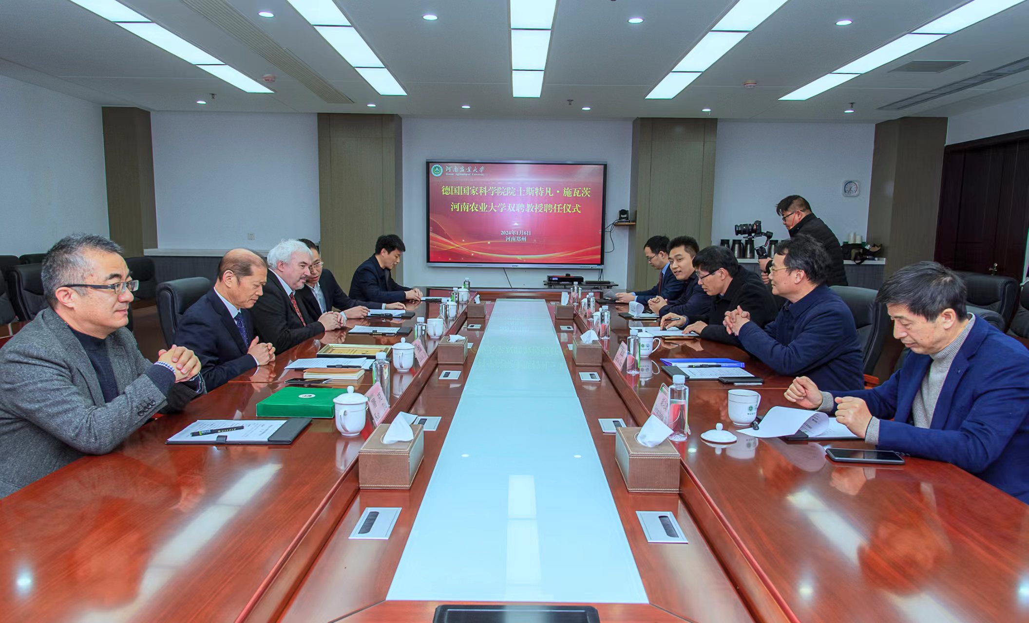 1月6日上午,学院在龙子湖校区综合办公楼318会议室举行聘任仪式,德国国家科学院院士、德国柏林自由大学教授Stefan Schwarz受聘为我院双聘教授。校长介晓磊出席仪式并为Stefan Schwarz教授颁发聘书。学校相关职能部门和我院教师代表参加聘任仪式,会议由人事处处长董勇主持。