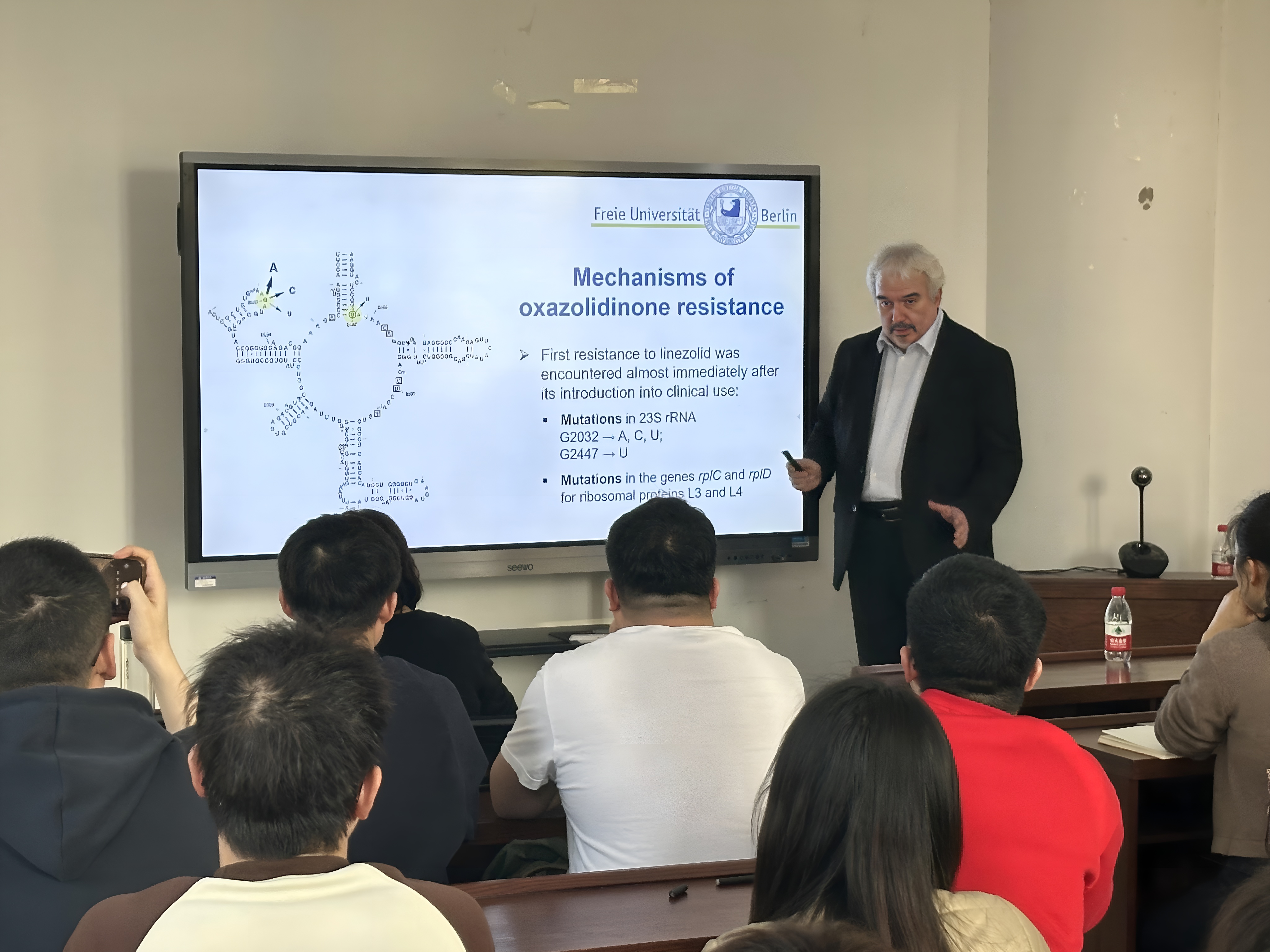 1月5日下午,在第一实验楼北530会议室,应我院院长张龙现邀请,德国国家科学院院士、德国柏林自由大学教授Stefan Schwarz为我院师生带来了题为“Genetics of mobile oxazolidinone resistance genes among bacteria from humans and animals”的精彩报告,学院教师和研究生参加了报告会。