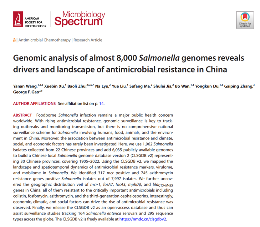 Salmonella genomes reveals drivers and landscape of antimicrobial resistance in China. Microbiology Spectrum. 2023; DOI: https://doi.org/10.1128/spectrum.02080-23.