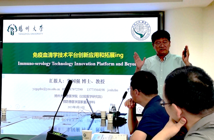 2023年8月18日下午,应我院邀请,扬州大学兽医学院朱国强教授以《免疫血清学技术平台创新应用和拓展ing》为题在龙子湖校区第一实验楼北430会议室为我院师生作学术报告。会议由张龙现院长主持,我院部分教师及相关专业研究生现场认真听取了报告。