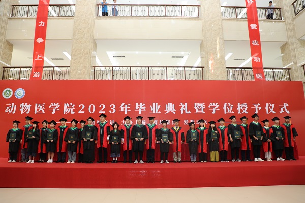 院长张龙现教授祝贺全体毕业生顺利毕业,高度赞扬了2023届毕业生攻坚疫情之下极强的韧性与勇气,嘱托全体毕业生要时刻铭记身为动医人的责任,永葆动医人的底色,传承动医精神,让新时代的动医精神熠熠生辉。并向毕业生提出四点希望:一是牢记自己是一名动医人,时刻铭记肩上的责任,传承先辈科研创新、勇攀高峰的卓越精神,成为动医人的骄傲;二是牢记动医精神,将个人的理想与民族命运、国家前途紧密相连,共同推动强国强农新篇章;三是希望同学们心怀梦想,做一个终身学习的人,成为保障国家畜牧业发展和人类安全的重要力量,在各个领域建功立业,实现理想;四是希望同学们扎根基层,做一个敢担当作为的人。脚踏实地,向下扎根、向阳而生,努力在生动实践中了解国情民情、淬炼意志品质、增强实干本领,把爱国之心化为报国之行,让青春之花绽放在祖国最需要的地方。