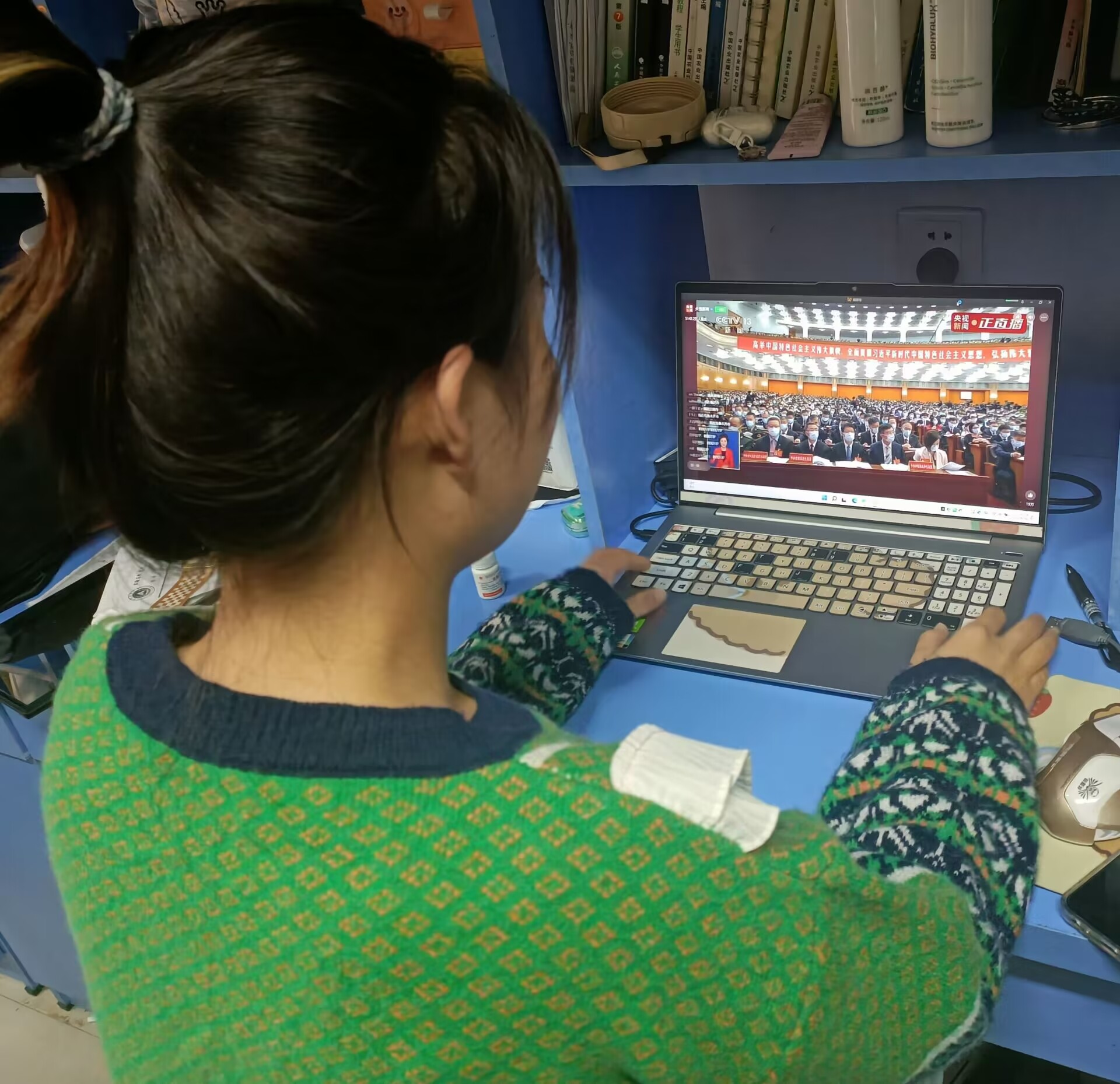 各学生党支部、团支部部分代表在党员活动室、寝室等场所集中或分散观看了开幕会实况和习近平同志在开幕式上的报告。大家聚精会神,满脸悦色,共同见证这一历史时刻。