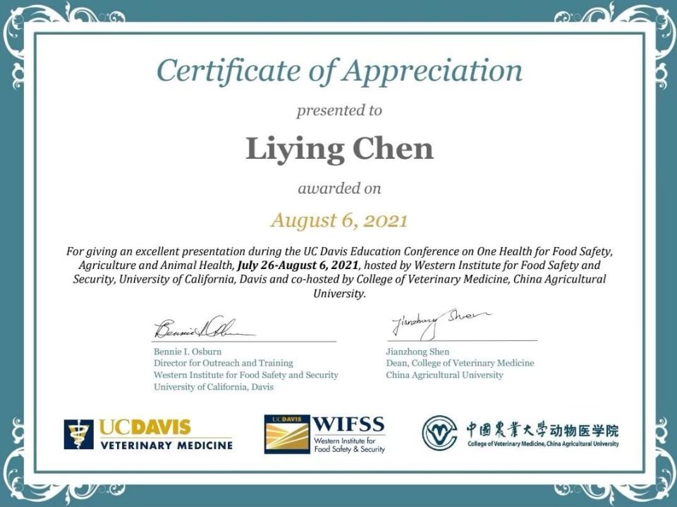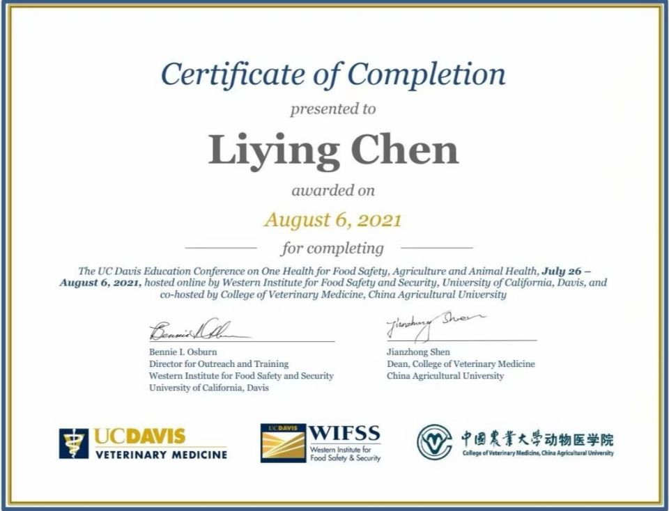 近日,由美国加州大学戴维斯分校(UC Davis)兽医学院和中国农业大学动物医学院联合主办的第12届“全健康(One Health)”暑期线上学术交流活动圆满落幕。我院教师陈丽颖和我院2020级兽医学博士王璐阳参加会议并作主题汇报。