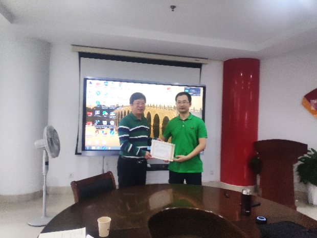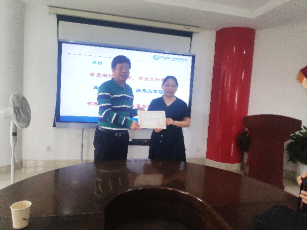 魏战勇为两位老师颁发荣誉证书,对两位老师取得的成绩与报告内容予以肯定。魏战勇表示,希望学院教师不忘科研初心,以国家和人民的利益与需求为导向,全身心投入科学研究。在项目申报过程中,虚心请教,反复论证,提高申报质量,争取在2022年国家自然科学基金申报过程中再创佳绩。