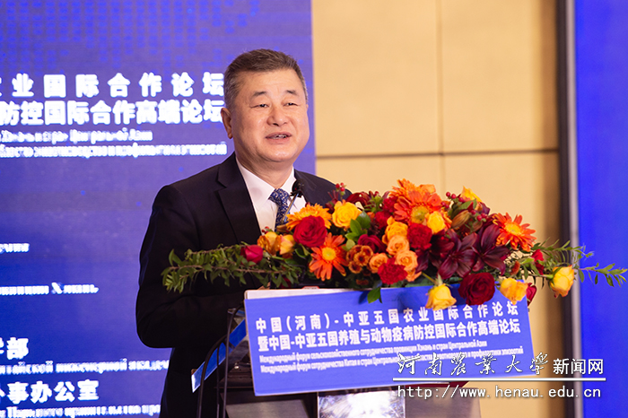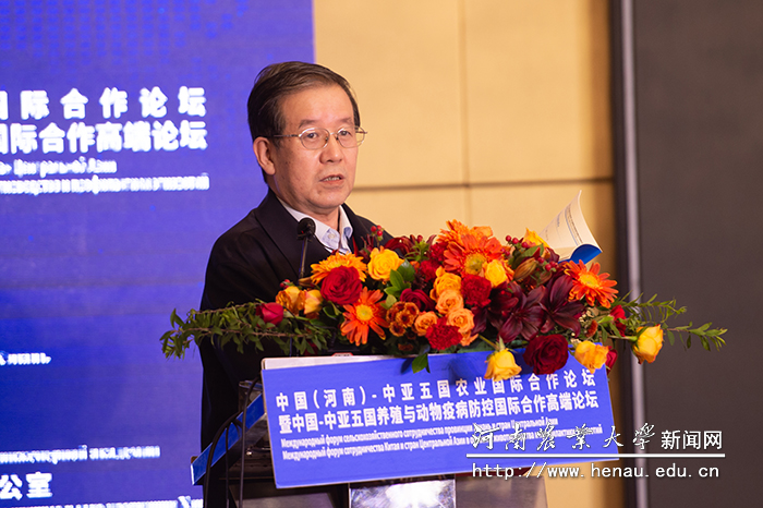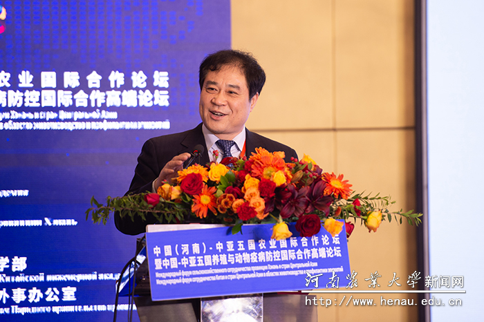 本网讯(通讯员 王照兰 李成龙 李佳怡 樊艳)11月27日下午,由中国工程院、河南省人民政府共同主办的中国(河南)–中亚五国农业国际合作论坛暨中国–中亚五国养殖与动物疫病防控国际合作高端论坛主旨报告会在郑州成功举办。该报告会以“跨界融合 开放共享–推动现代农业合作发展”为主题。中国工程院院士、中国农业大学教授李德发,中国工程院院士、军事医学科学院研究员金宁一,中国工程院院士、河南农业大学校长张改平,中国工程院院士、河南省农业科学院院长张新友,中国科学院院士、中国农业科学院哈尔滨兽医研究所研究员陈化兰,中国工程院院士、西北农林科技大学教授张涌,牧原实业集团有限公司董事长钱瑛出席了本次会议,国内知名专家、学者,省内相关高校、科研机构,企业代表和我院师生代表共约200人现场参加了该会议。会议分两个阶段进行,分别由金宁一院士和张涌院士主持。
