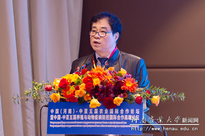 我院院长张龙现教授以《中亚五国养殖业与疫病防控合作的战略研究》为题,从战略构想、实地调研、体系构架、对接企业、中亚五国养殖业现状、中亚五国畜牧业科技现状、中亚五国兽药研发现状、建议八个方面作了报告。他指出,我国在动物养殖、动物疫病防控等领域拥有领先的科技水平和丰富的人才资源,与中亚各国在农业领域合作面临着重大机遇,前景广阔。该项目的实施,将对中亚五国养殖业、畜牧业和防控技术与产品等实际现状给出数据性和宏观性评价,为我国与中亚五国合作提供可行性方案。
