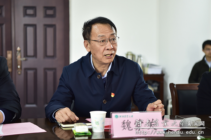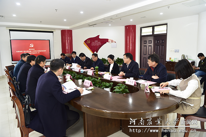 魏蒙关代表学校致辞。他首先对验收组组长、南阳师范学院党委副书记邵书峰等领导专家来校指导验收基层党支部工作表示热烈欢迎,对省委高校工委和兄弟院校多年来对农大工作的关注和支持表示感谢。他介绍了学校基本情况、人才队伍建设和社会服务工作,特别是在基层党建工作中的创新思路、做法和取得的成绩,希望专家组领导多提宝贵意见和建议,同时要求我院以此次验收为契机,多学习、多总结、多凝练、多提高,充分发挥样板支部的示范带动作用,落实立德树人根本任务,始终坚持以党建高质量推动事业发展的高质量。