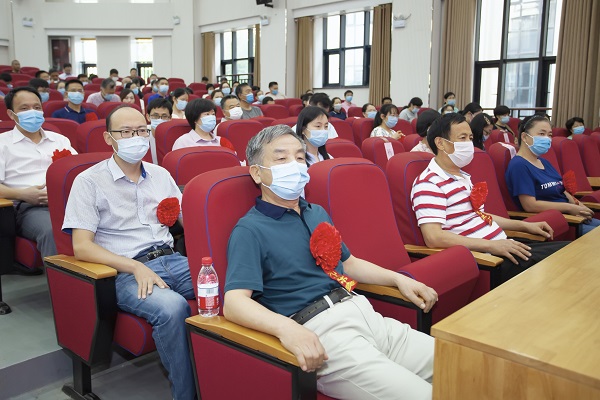 表彰会还设置了一个令人动容的环节,对学院退休老教师代表王川庆、肖传斌和姚惠霞敬予特殊礼赞。廖仲磊和张龙现走下主席台,将三位老教师恭迎至台前,感谢他们“蜡炬成灰泪始干”的奉献精神和 “化作春泥更护花”的高尚情怀,同时也代表年轻一代表态,蚕丝吐尽春未老,烛泪成灰秋更浓。我们必将施肥浇水培蓓蕾,转年再来报师恩。