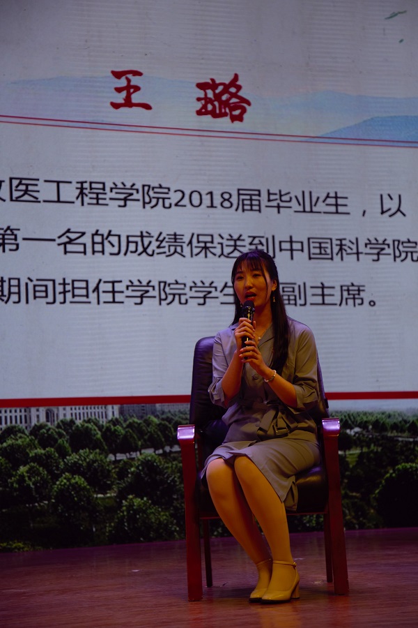 我院2018届生工专业毕业生王璐作为优秀校友参与《青春不负韶华——毕业生访谈》节目,王璐曾以专业第一的成绩被保送到中国科学院,在校期间曾担任院学生会副主席,其参与的《从种“粮食”到种“饲草”——河南省粮改饲情况调查研究》获得第十五届“挑战杯”全国大学生课外学术科技作品竞赛哲学社会科学类国家级二等奖。在大会上,她结合自身成长经历阐述了她所理解的学习职业规划、科技创新、学生干部之间的互促互进关系,鼓励学子们主动投身科技创新启迪思维、增长才干。在场师生认真聆听,深受启发。