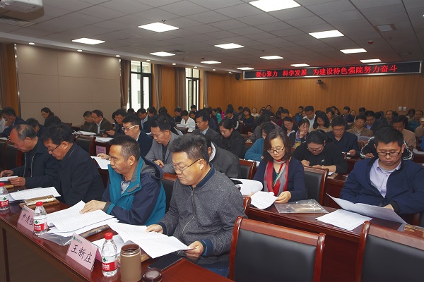 院长杨国宇作《院长工作报告》。他全面回顾了学院2018年学科建设和师资队伍建设、教育教学工作、科研和服务社会工作、学生工作及和谐学院建设等方面的主要成效,分析了学院发展面临的形势,指出,我们的发展目标更加明确、发展环境机遇和挑战并存、发展任务更加艰巨,必须解放思想,实事求是,坚定信心,凝聚共识,形成合力,长远谋划,主动担当,埋头苦干,推动发展。