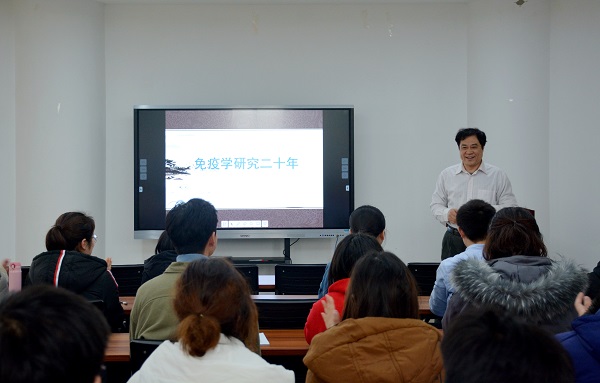 1月4日下午,校长、中国工程院院士张改平在龙子湖校区第一实验楼北530会议室为我院师生作了题为《免疫学研究二十年》的“龙湖论坛”专题学术讲座。学院部分教师、博士研究生和硕士研究生近80人聆听了此次专题学术讲座。