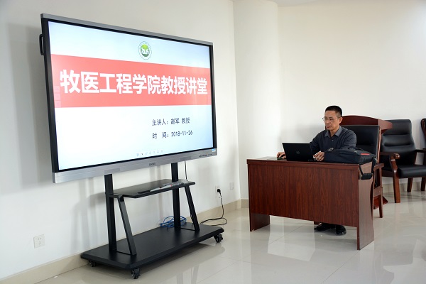 11月26日下午,我院“教授讲堂”在第一实验楼北330会议室开讲,赵军教授作了题为《禽腺病毒致病机理和载体技术平台研究》的学术报告,院部分学生参加了报告会。