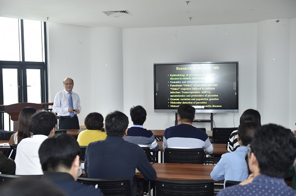 9月20日上午,我院“龙湖论坛”邀请国际著名寄生虫学家、中国农业科学院兰州兽医研究所朱兴全研究员做了题目为“Research advances in parasite genetics, 'omits', molecular diagnosis, molecular vaccines and parasite-host interplay in the ZHU lab”的学术报告。报告会在龙子湖校区第一实验楼北530举行,我院50多名师生聆听了他的报告。